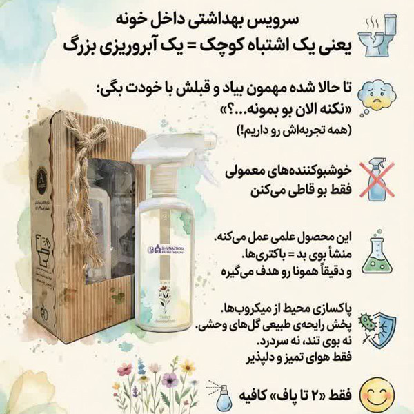 محلول خوشبو کننده فضا و سرویس بهداشتی ، خنثی کننده بوهای نامطبوع و فاقد حساسیت و آلرژی.